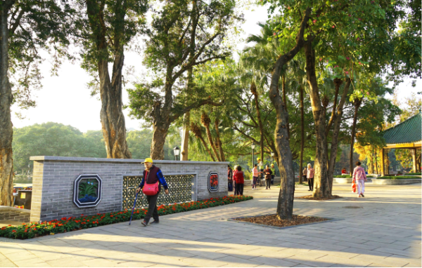 The Xinhepu Historical and Cultural Block has revitalized its red cultural resources to build red landmarks. Taking advantage of the Dongshan Meat Market—the birthplace of agricultural reform and development in Guangdong Province—the block has cleverly connected public spaces, green areas and leftover lands to expand a 1,071 square-meter public square, creating a gateway of red cultural impression. The Liwan Lake-Enning Road Historical and Cultural Block is a millennium-old hub of water transportation and commerce. Guided by the concept of integrating the city with the park, Liwan Lake Park has connected a 100-meter waterfront park path at its east gate, adding glazed lattice windows and painted brick carving walls to reproduce the waterfront charm of the Xiguan area. The Chen Clan Academy Zone is a block inheriting historical cultural context and embodying Lingnan cultural characteristics. The east square incorporates intangible cultural heritage symbols of “three carvings, one color, one embroidery and one kiln”, transforming temporary metro construction land into a 12,000 square-meter open space with Lingnan style. On the north side, industrial heritage has been revitalized—the former cigarette factory site has been turned into a commercial and cultural square, and 1,500 meters of corridors have been added to connect various functional areas. The zone has been built into a Lingnan cultural living room integrating cultural experience, community life and tourism services as a whole.