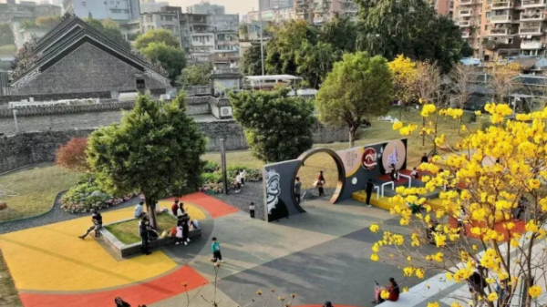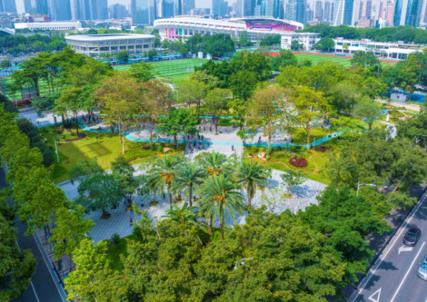 Following the development concept of “building the city around the axis”, Guangzhou is shaping a multi-functional urban development spine with greater international influence, innovation leadership and cultural appeal along the new urban central axis, creating a world-class urban center accessible to all. The southern section of the central axis is vertically connected by a north-south slow-traffic corridor—no less than 6 meters wide and linked end to end—to green axis parks. It is divided into 5 thematic sections and 16 themed parks. For example, the former site of Guangzhou Textile and Garment Vocational School has been reconstructed into a 1.4-hectare urban park.
